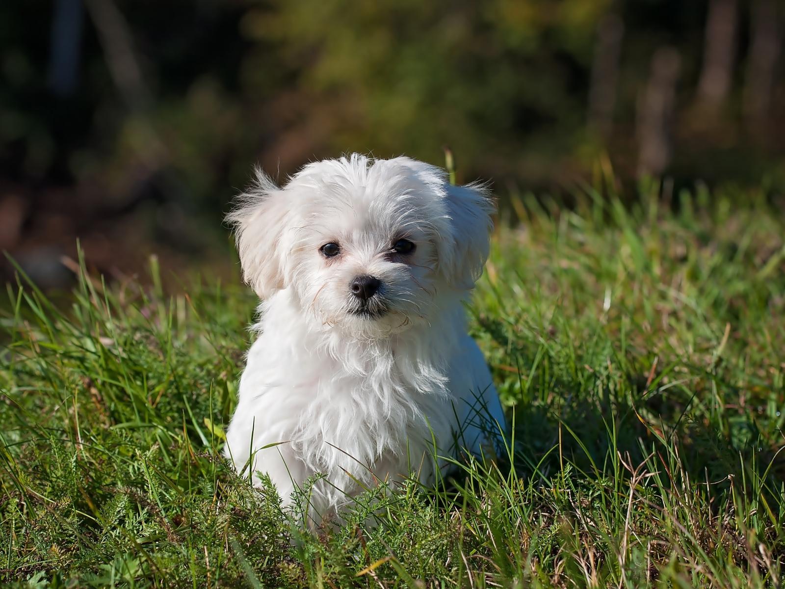 Wallpaper Beautiful blue-eyed cat is sitting on the green grass in green leaves.