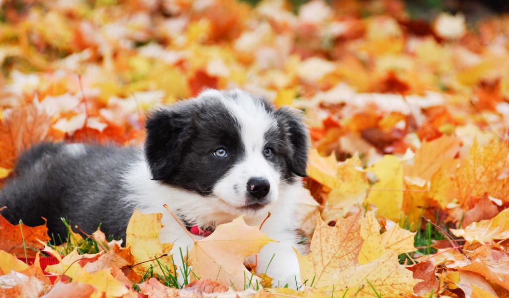 Wallpaper Puppy Border Collie lies on the fallen foliage