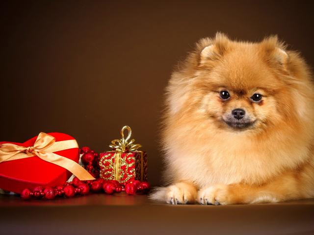 Wallpaper Spitz with heart shaped gift