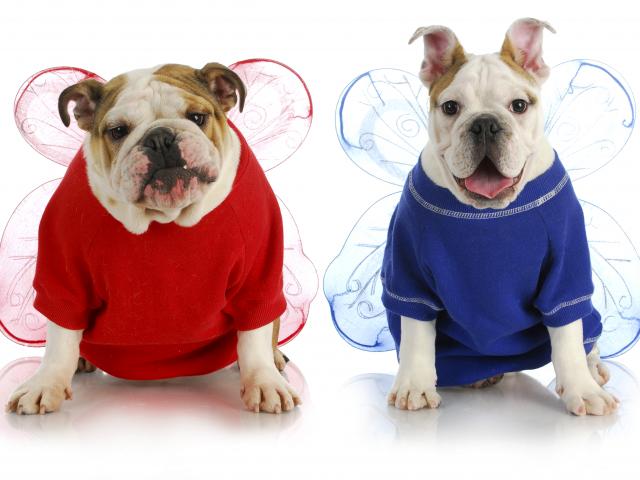 Wallpaper Two bulldogs in funny suits on a white background