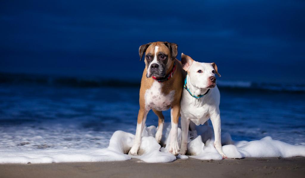Wallpaper Two dogs walk along the seashore along the foam