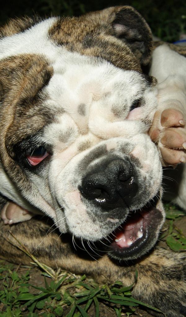 Wallpaper English Bulldog with puppy playing on the grass