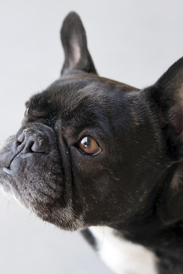 Wallpaper Black French Bulldog on a gray background