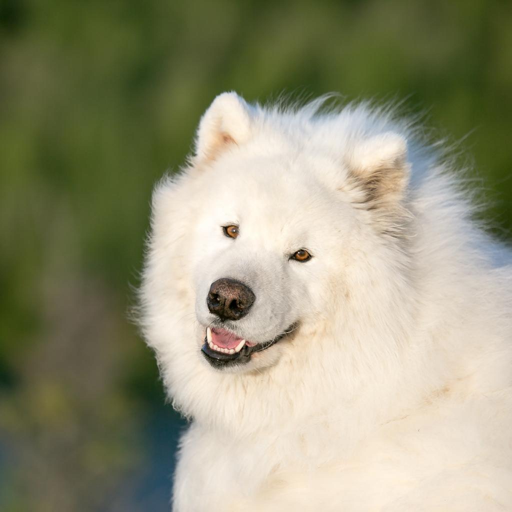 Wallpaper White Samoyed Dog with Tongue Hanging Out