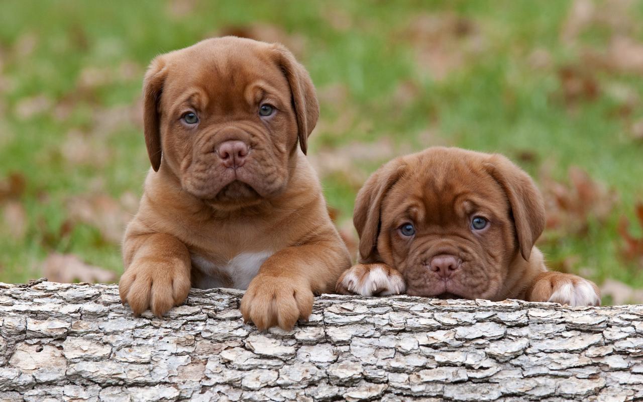 Wallpaper Two funny little Bordea pig dog