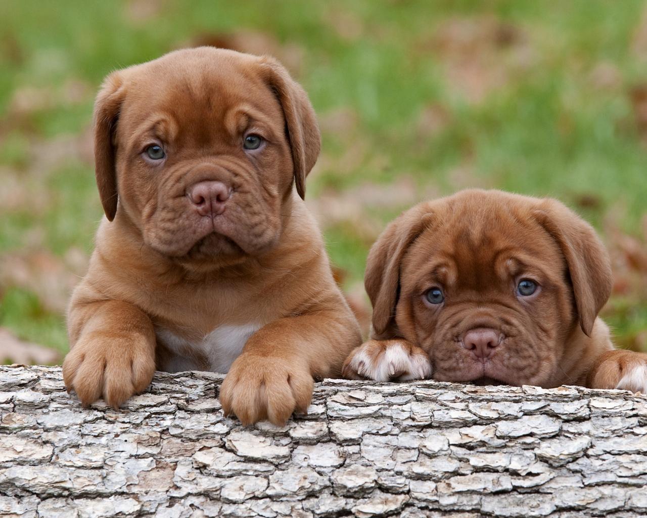 Wallpaper Two funny little Bordea pig dog