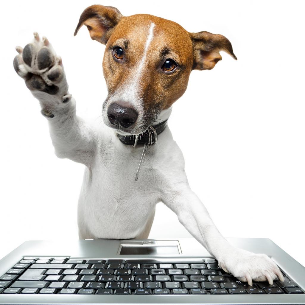 Wallpaper Jack Russell Terrier with keyboard on white background