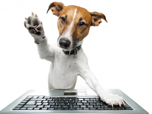 Wallpaper Jack Russell Terrier with keyboard on white background