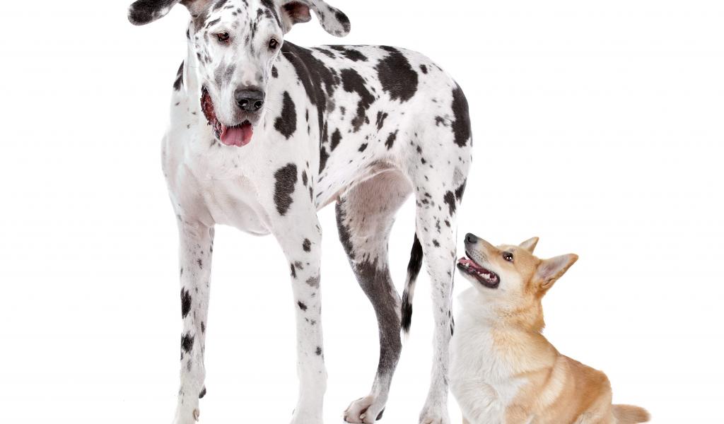 » Wallpaper Great Dane and Welsh Corgi on a white background