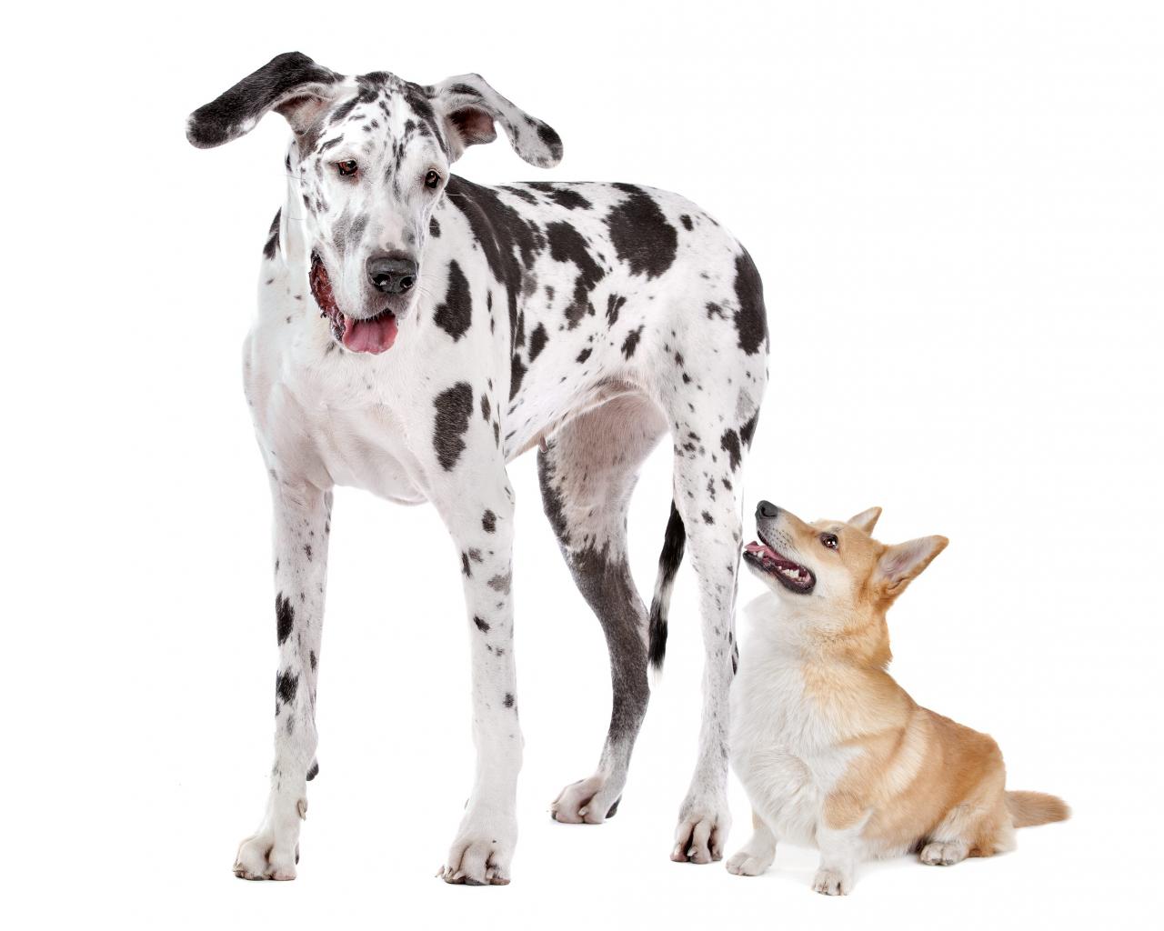 » Wallpaper Great Dane and Welsh Corgi on a white background