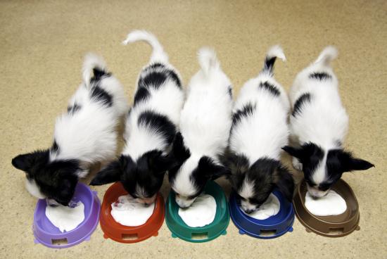 » Wallpaper Lovely puppy puppies eat from bowls