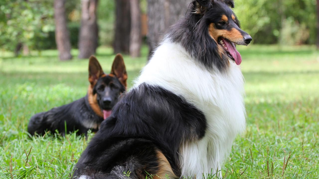 Wallpaper German Shepherd Sits in an Ambush in Green Grass