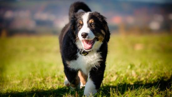 Wallpaper Little Australian Shepherd puppy on green grass