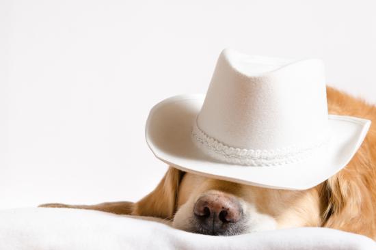 Wallpaper Golden Retriever sleeps in a white hat