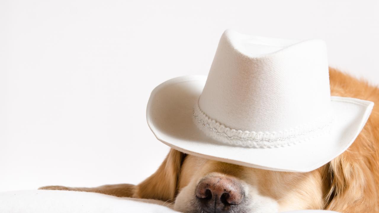 Wallpaper Golden Retriever sleeps in a white hat