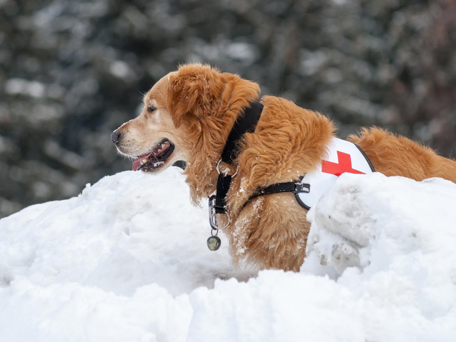 Wallpaper Dog Golden retriever lifeguard in the snow