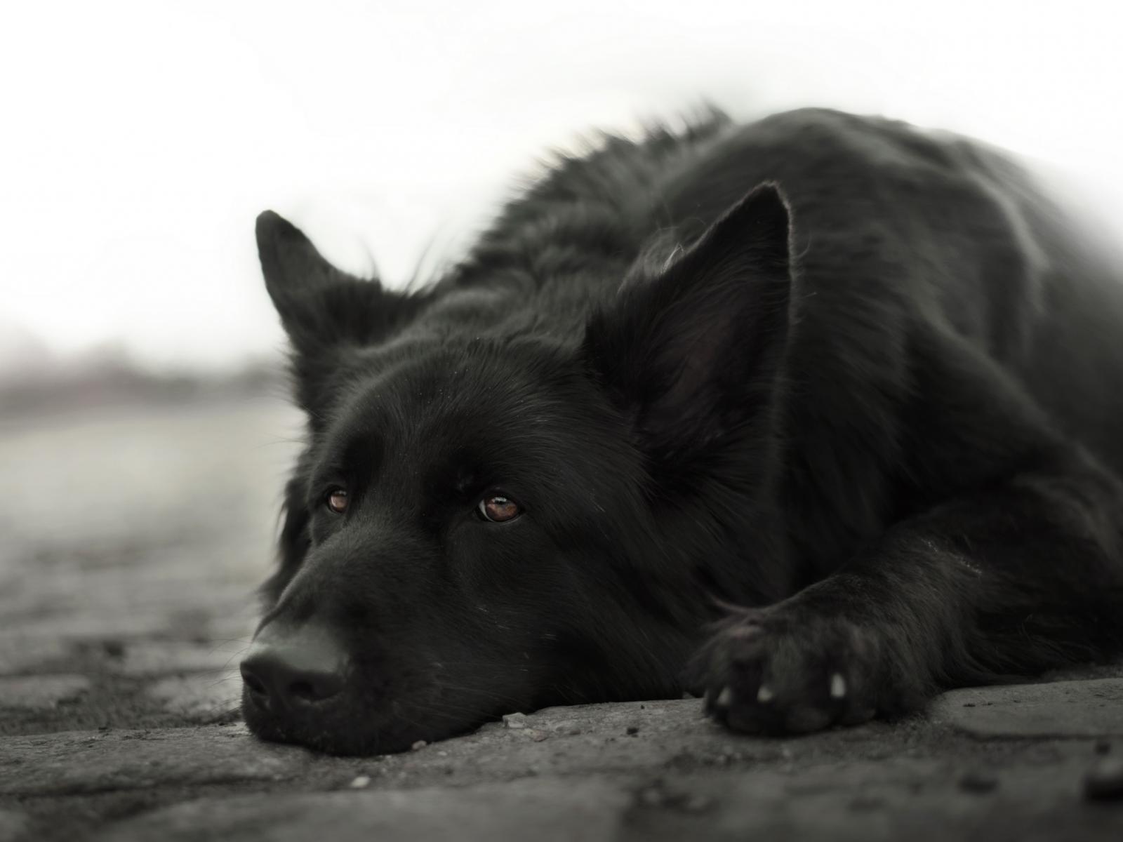 Wallpaper Sad German Shepherd lies on the ground
