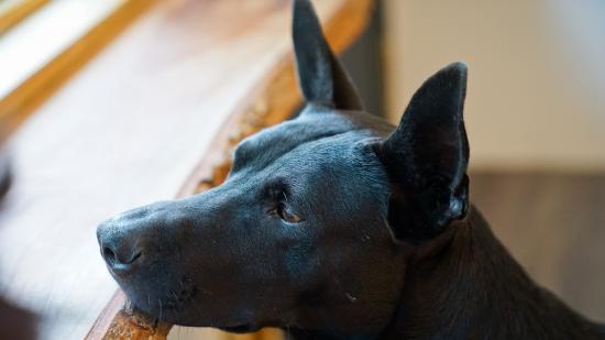 Wallpaper Sad black dog by the window