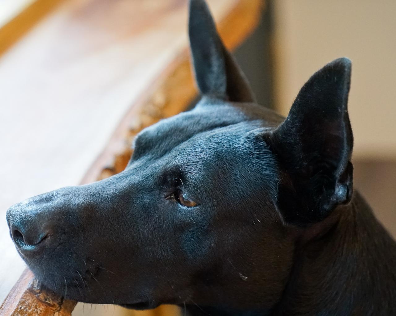 Wallpaper Sad black dog by the window