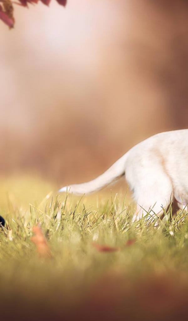Wallpaper Two little puppies in a green grass