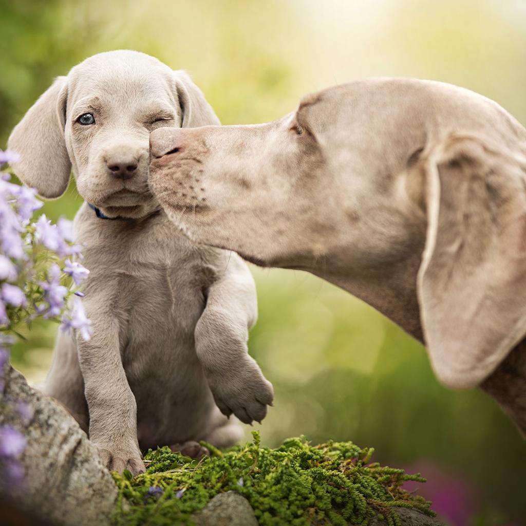 Wallpaper Weimaraner dog with puppy
