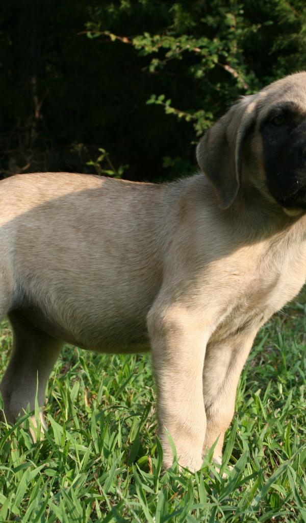 Wallpaper Puppy English mastiff stands on green grass