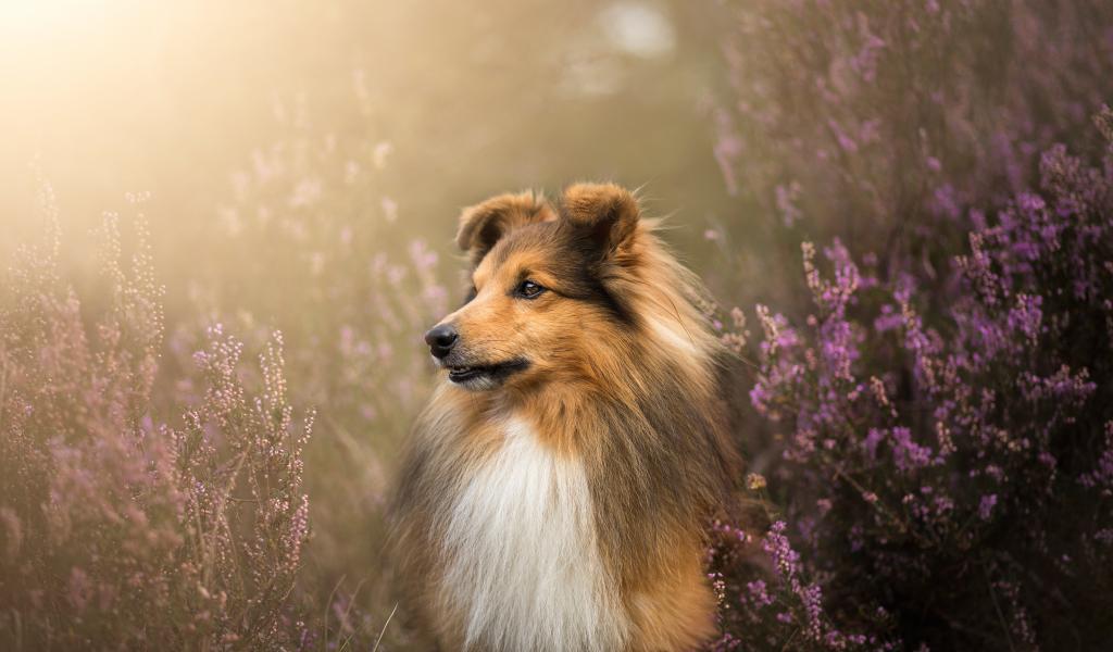 Wallpaper Two beautiful Sheltie breed dog in flowers