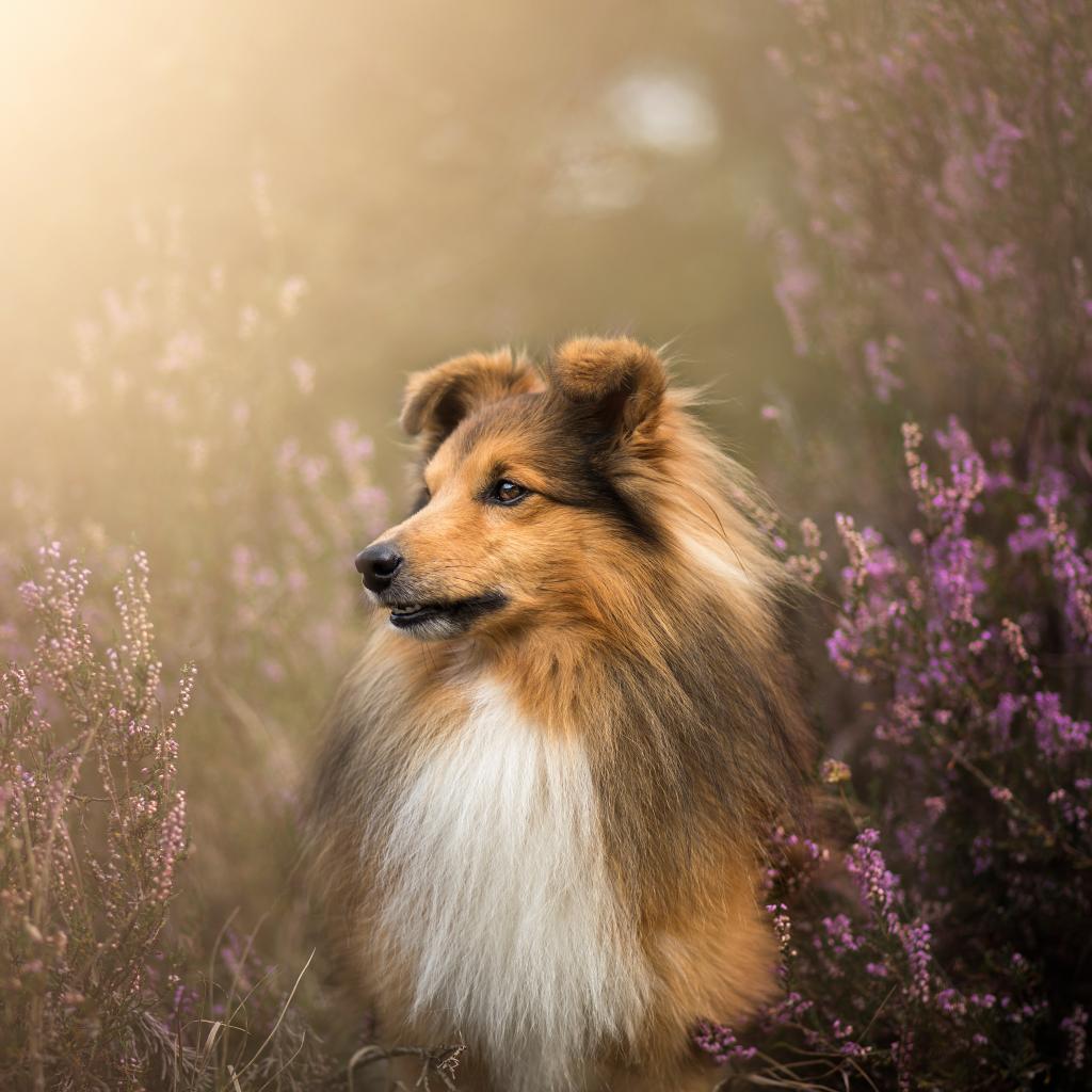 Wallpaper Two beautiful Sheltie breed dog in flowers