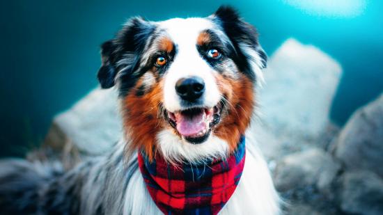 Wallpaper Australian Shepherd with sticking out tongue