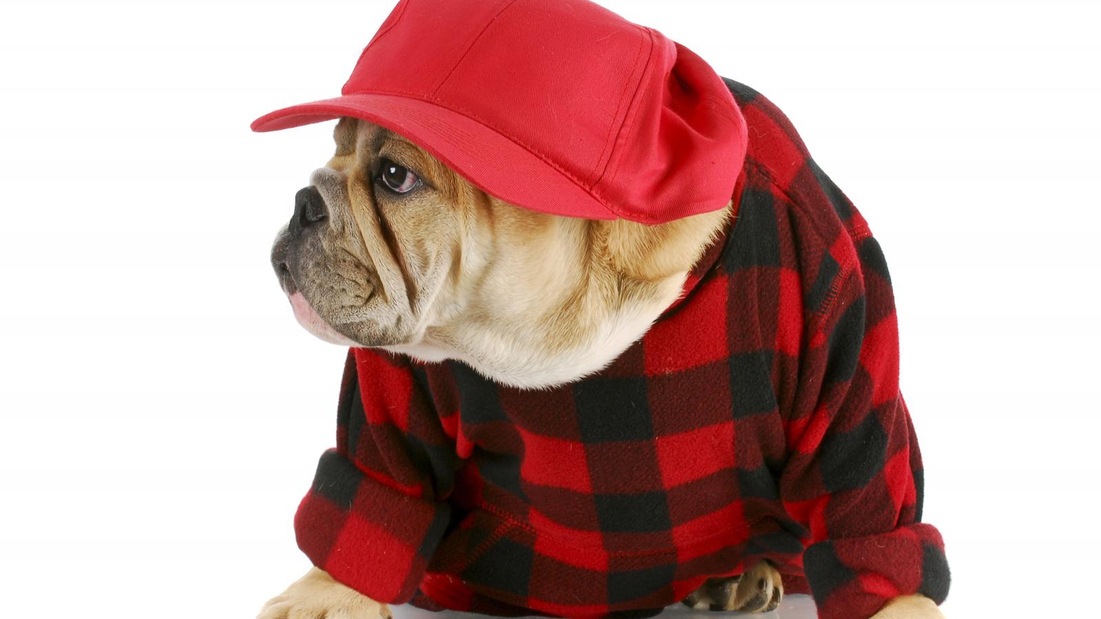 » Wallpaper Bulldog in baseball cap on white background