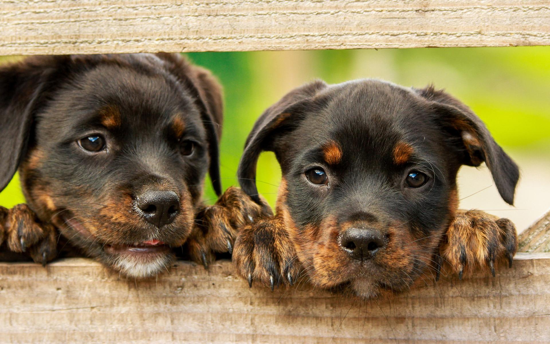 Wallpaper Two curious Rottweiler puppies