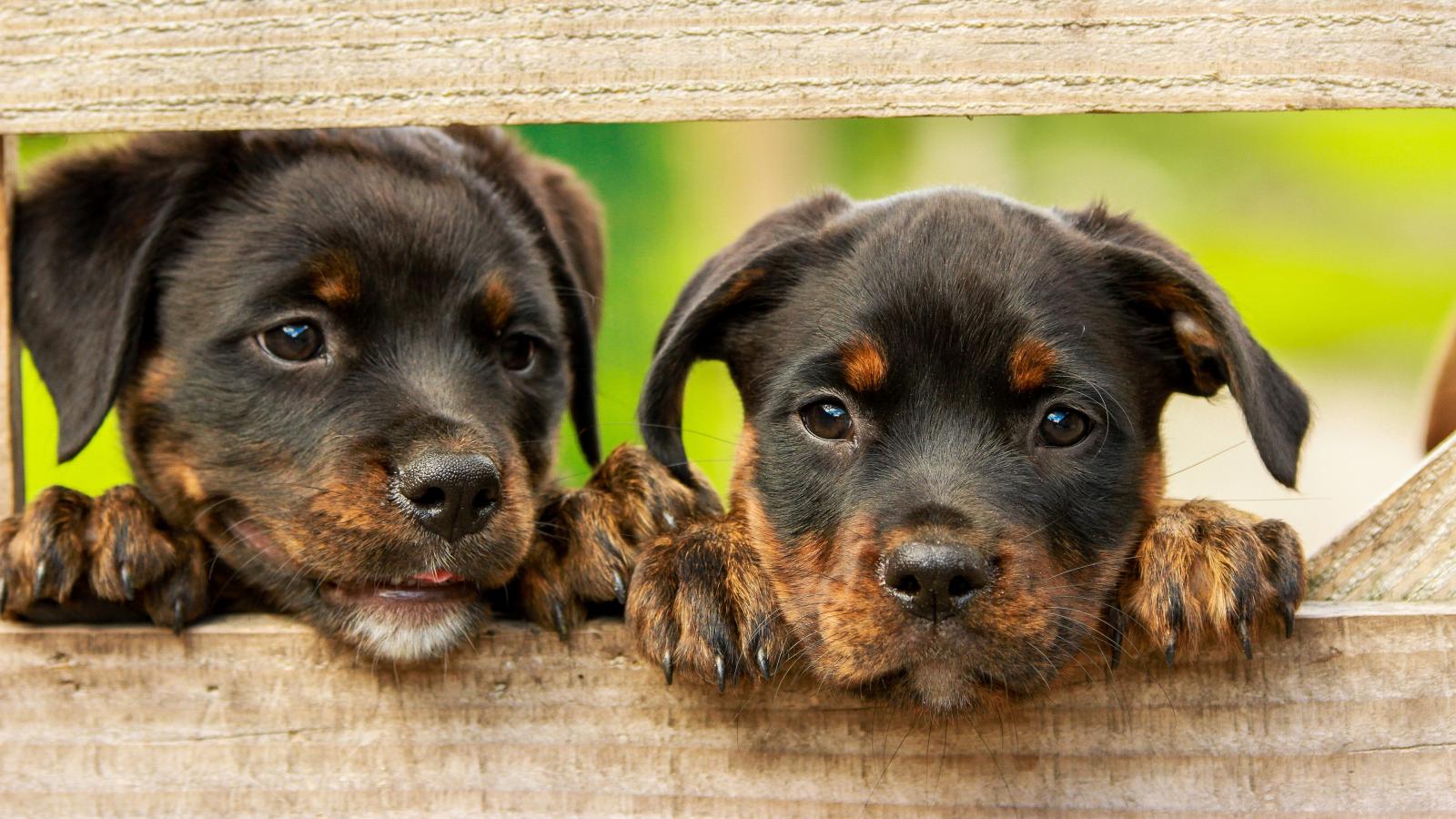 Wallpaper Two curious Rottweiler puppies