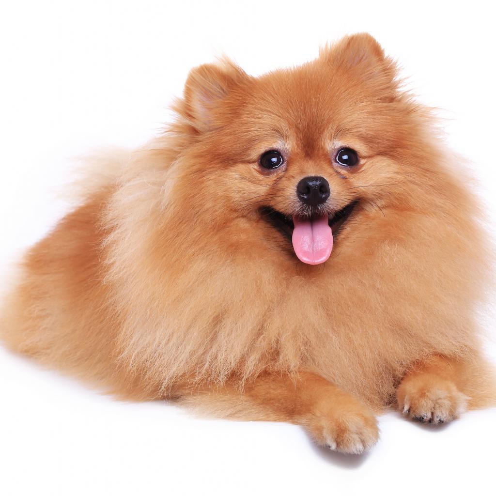 Wallpaper Spitz with sticking out tongue against white background