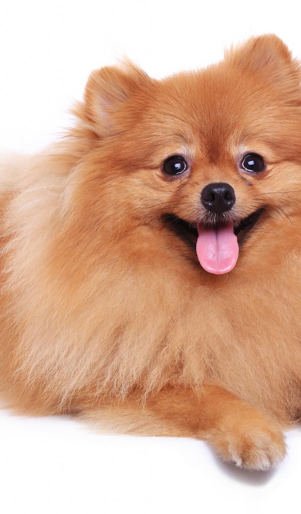 Wallpaper Spitz with sticking out tongue against white background