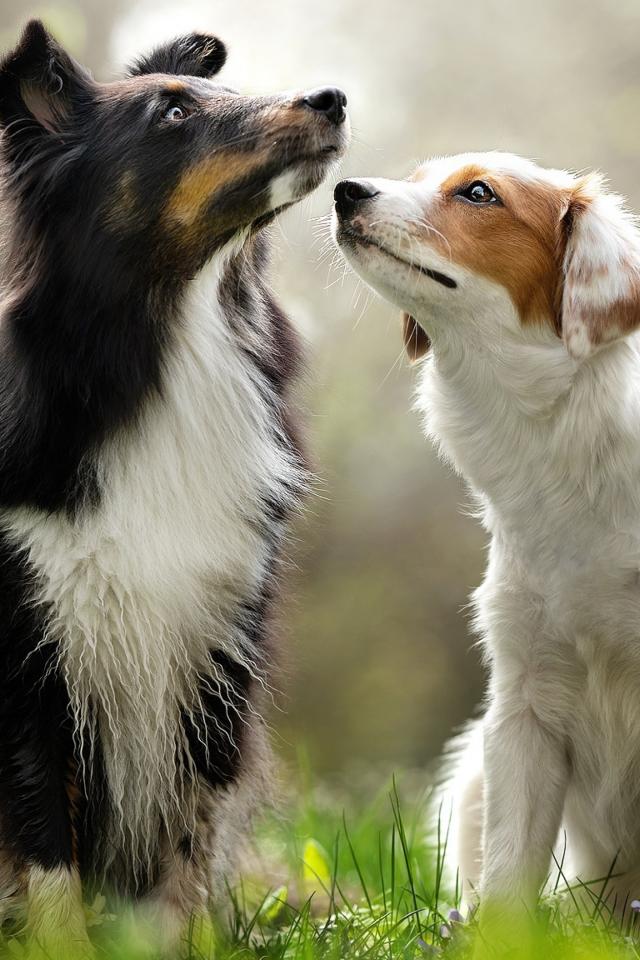 Wallpaper Two Border Collie dogs sitting on the grass