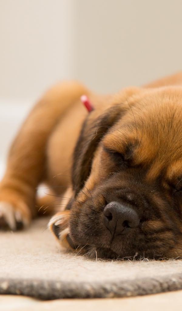 Wallpaper A little funny sleeping puppy on the floor
