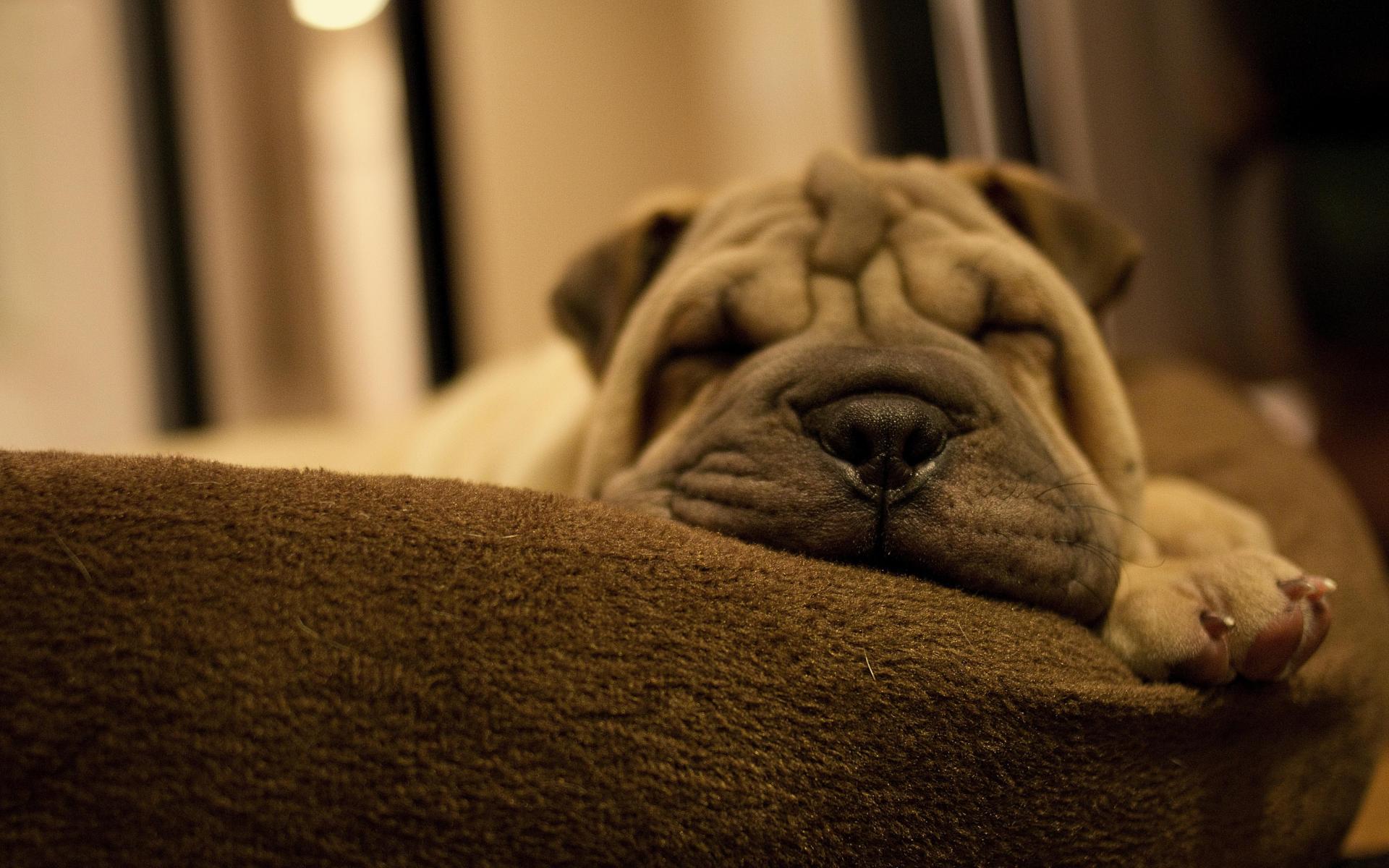 Wallpaper A small sleeping shar pei puppy