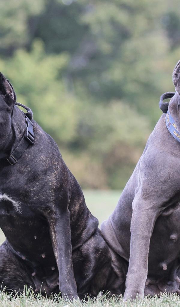 Wallpaper Two big dogs of Cana Corso breed on the grass