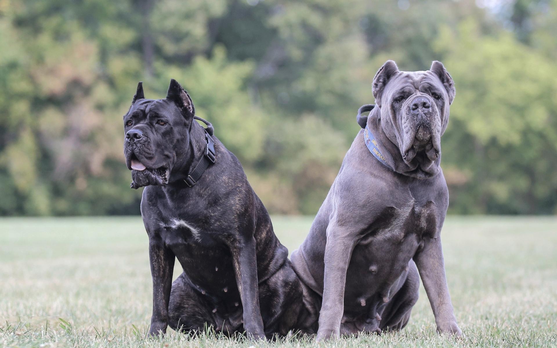 Wallpaper Two big dogs of Cana Corso breed on the grass