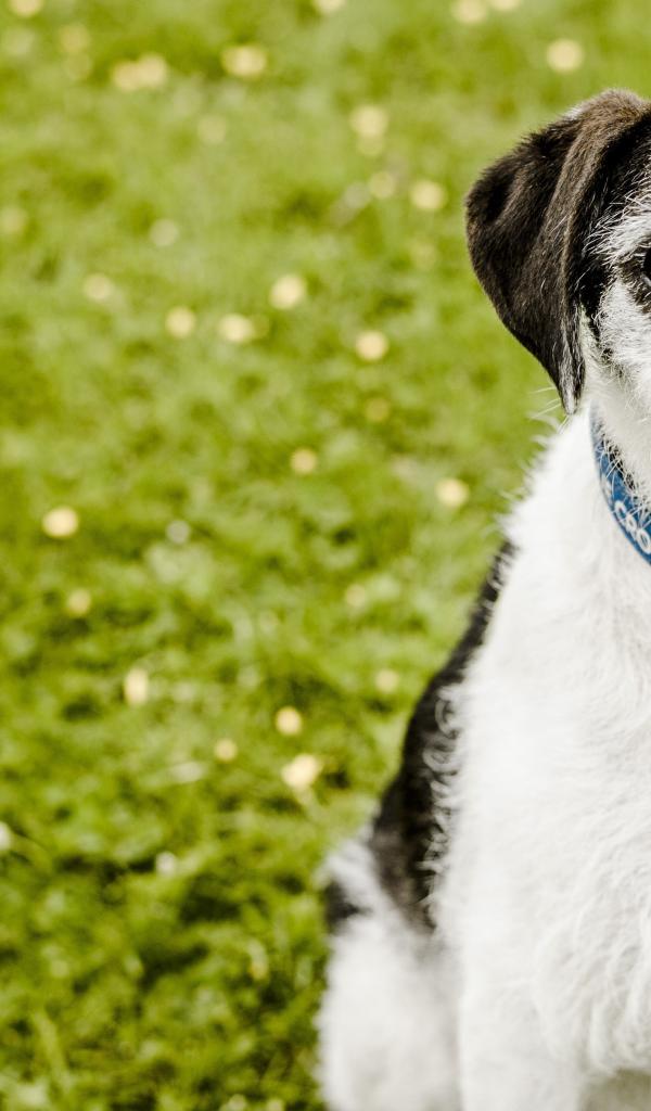 Wallpaper Dog with tongue hanging out sitting on the green grass