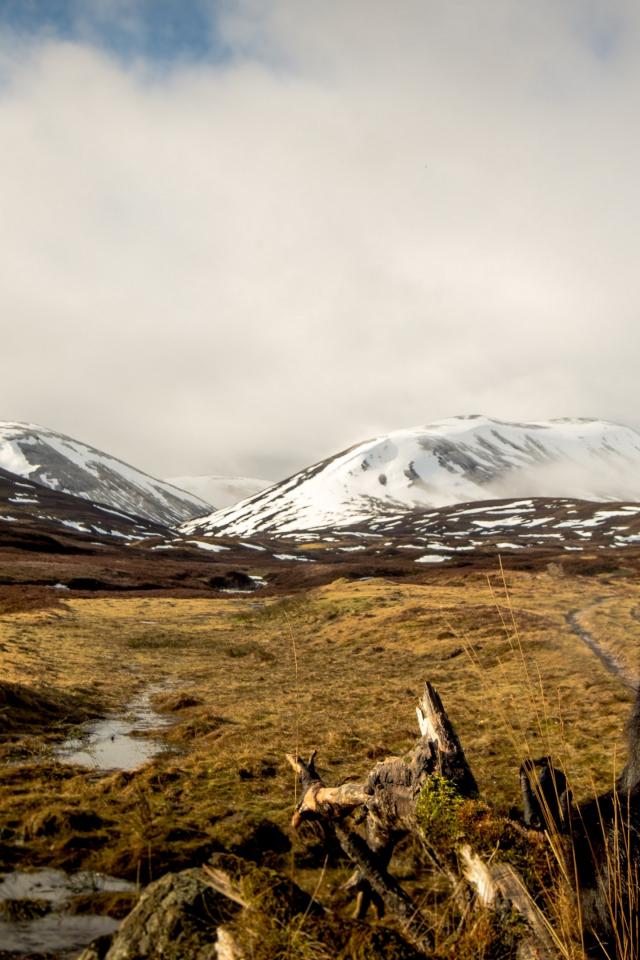 Wallpaper Australian Shepherd on a background of snow-capped mountains