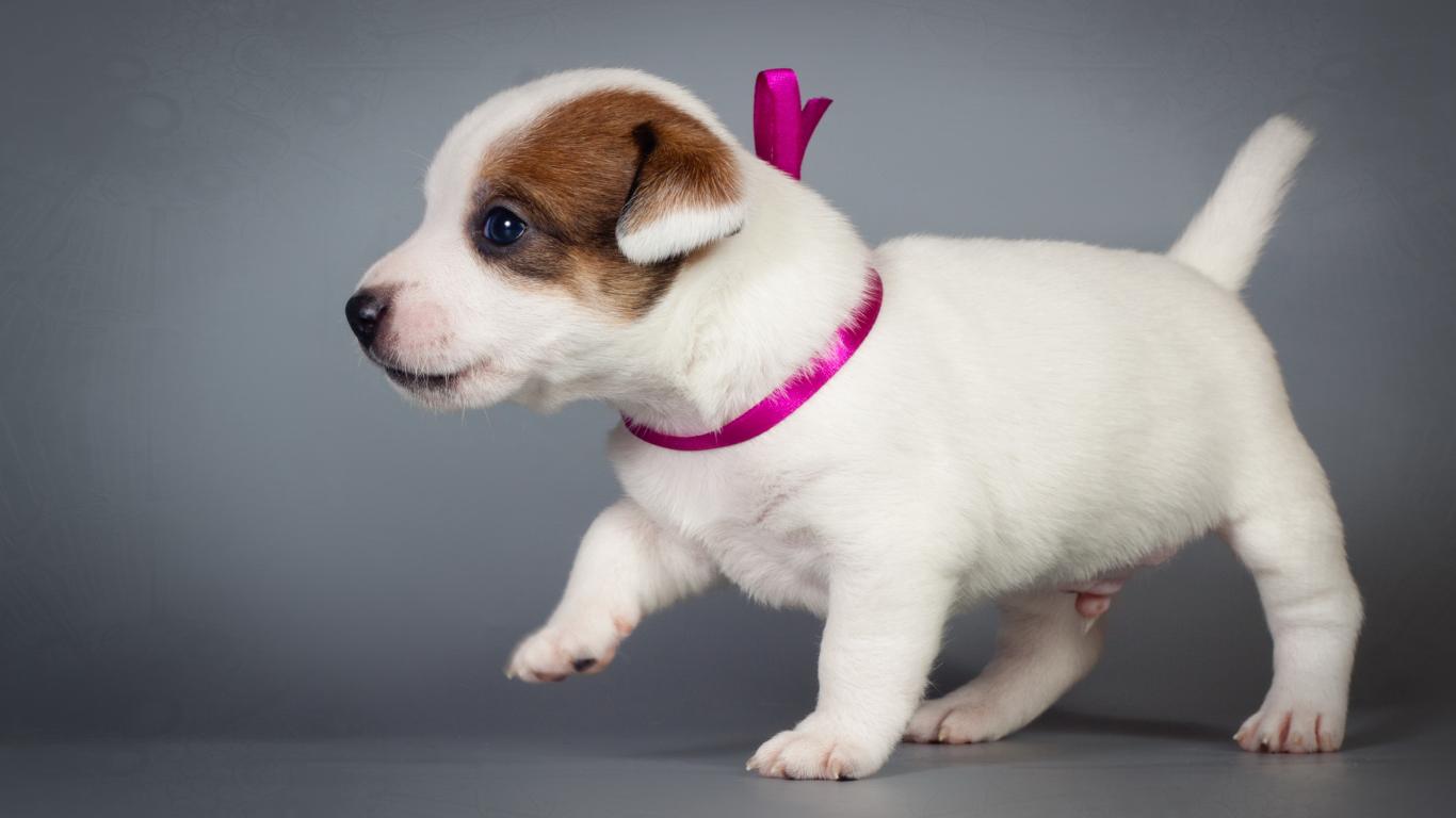 Wallpaper Little cute puppy jack russell terrier on gray background