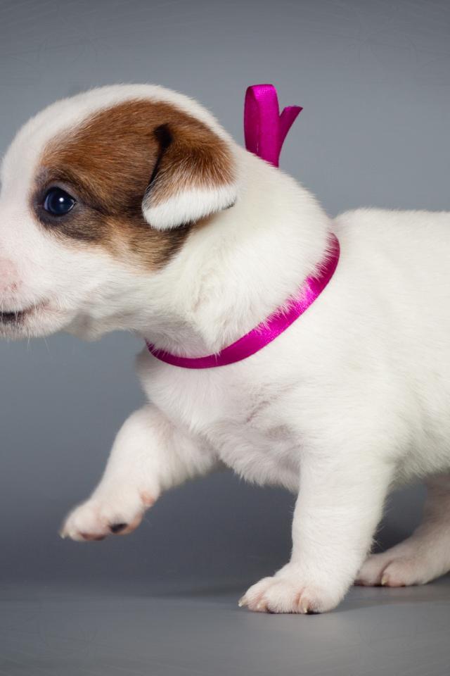 Wallpaper Little cute puppy jack russell terrier on gray background