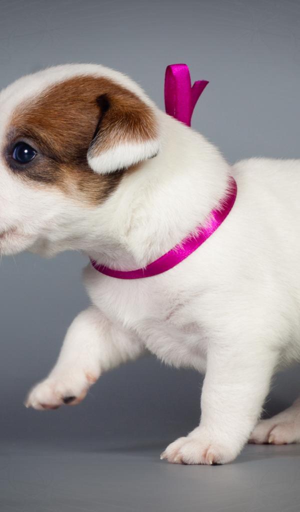 Wallpaper Little cute puppy jack russell terrier on gray background
