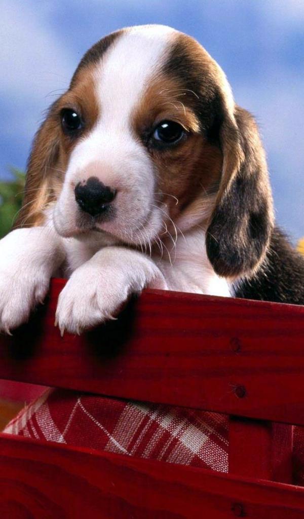 Wallpaper Little beagle puppy sitting in a box