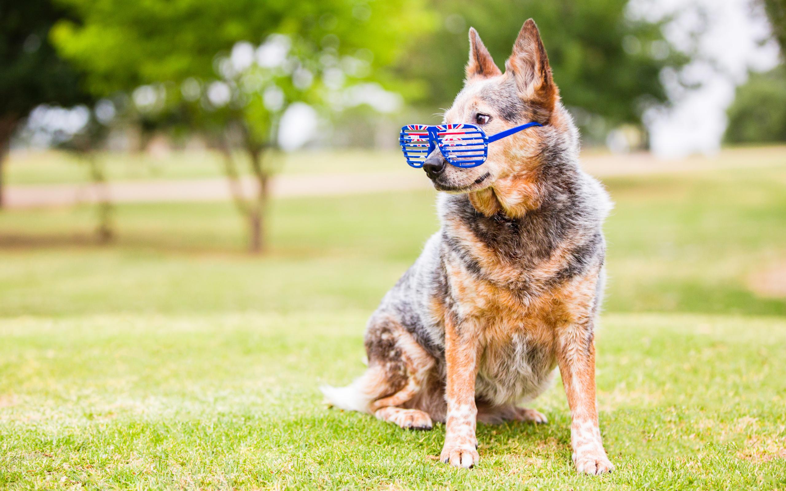 Wallpaper Australian Cattle Dog with glasses on green grass