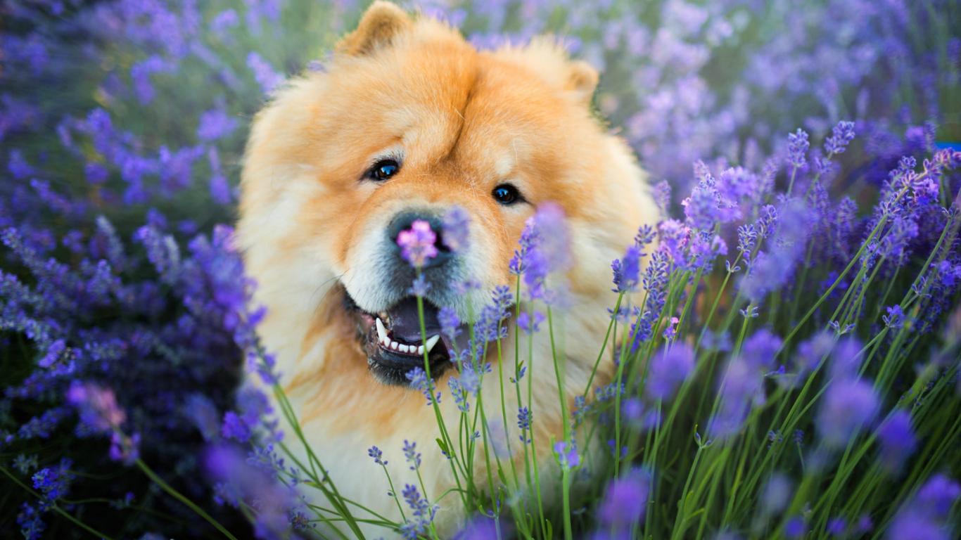 Wallpaper Cheerful chow chow dog in purple colors