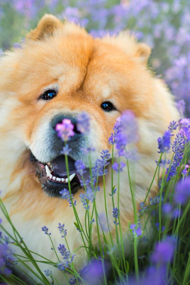 Wallpaper Cheerful chow chow dog in purple colors