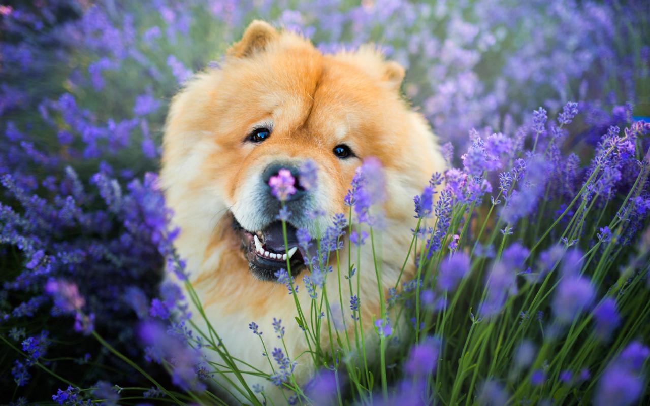 Wallpaper Cheerful chow chow dog in purple colors