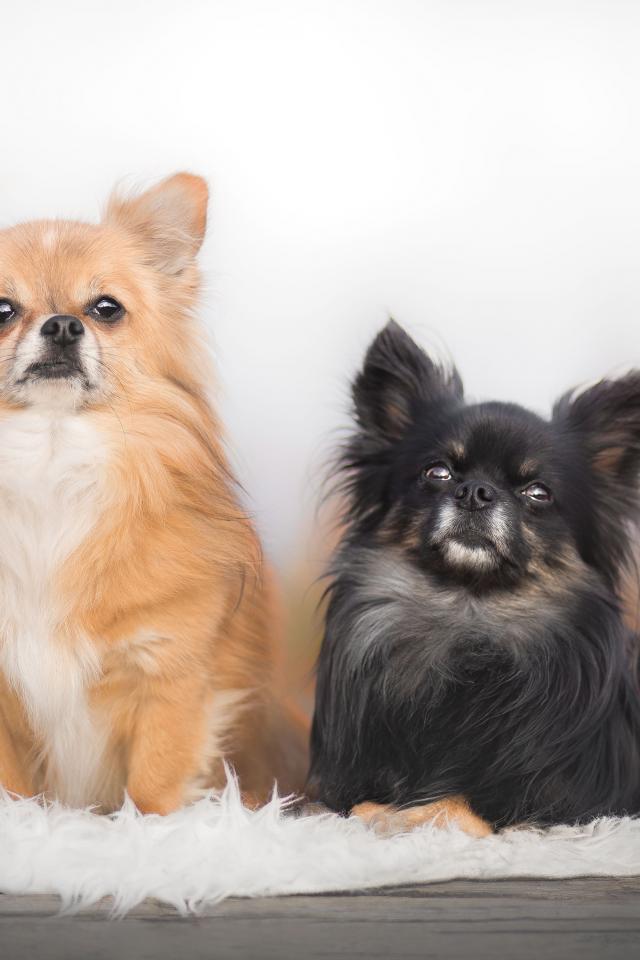 Wallpaper Two small dogs of Chihuahua breed on a gray background
